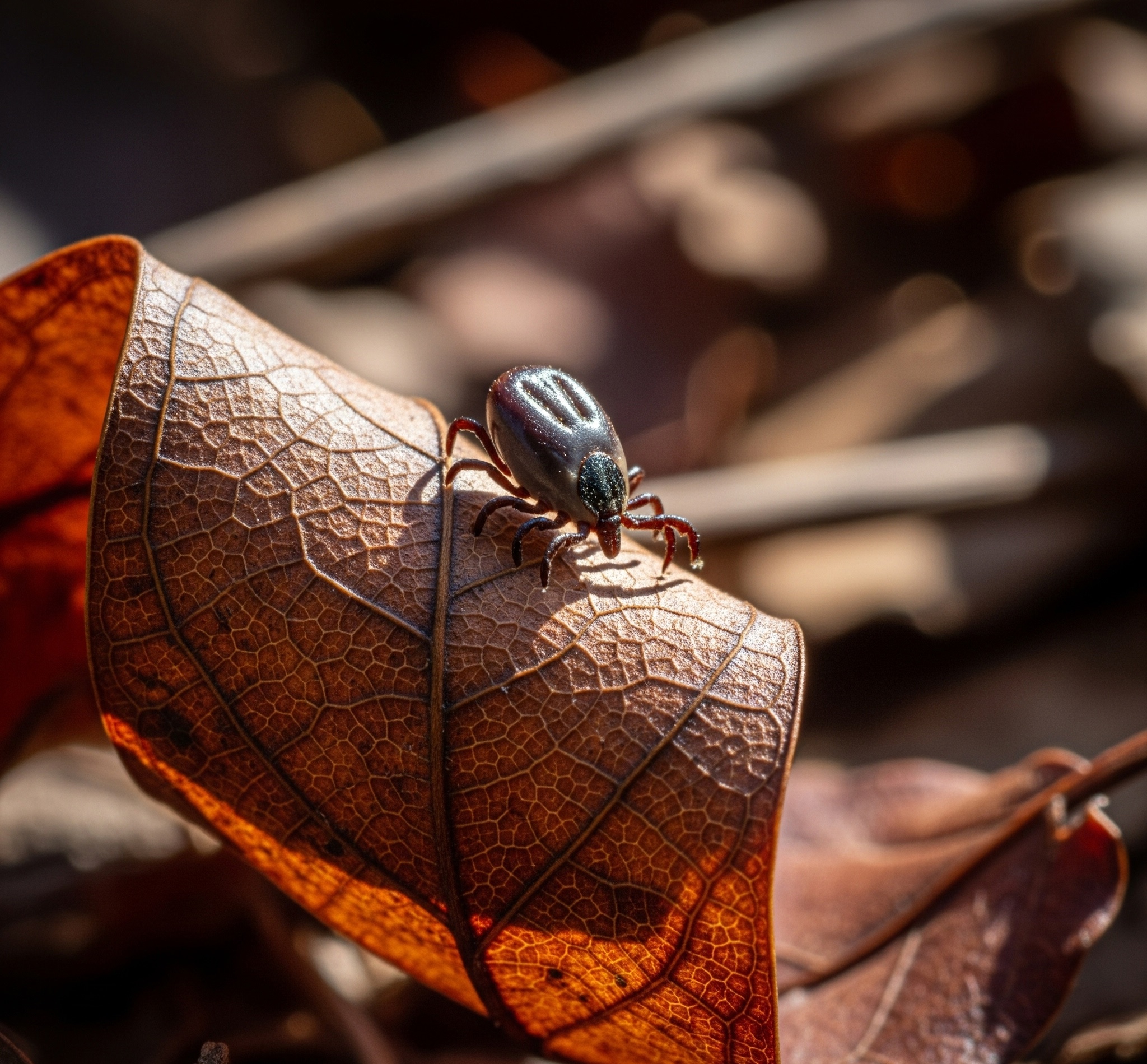 Вы думали, клещи исчезают с первыми холодами? А вот и нет! Они активны, пока температура не опустится ниже нуля. Осенью, особенно в тёплые деньки, они прячутся в опавшей листве и высокой траве, поджидая вашего питомца.